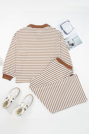 Plus Size Stripe V-Neck Pullover and Drawstring Pa