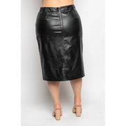 PLUS SIZE PU LEATHER HIGH WAIST FRONT SLIT ZIP BACK PENCIL S