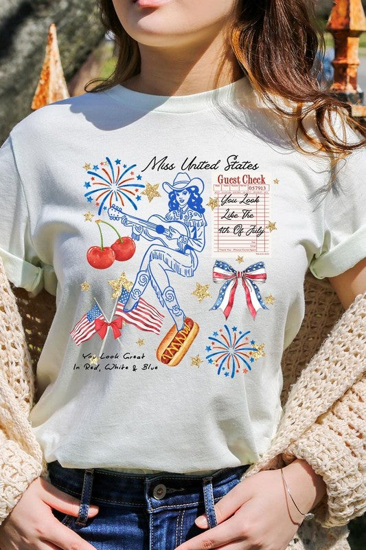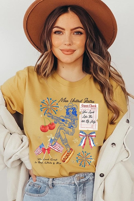 America, 4th of July, American Cowgirl, American Girl, Patriotic, Western, Country Graphic Plus Size Tee.