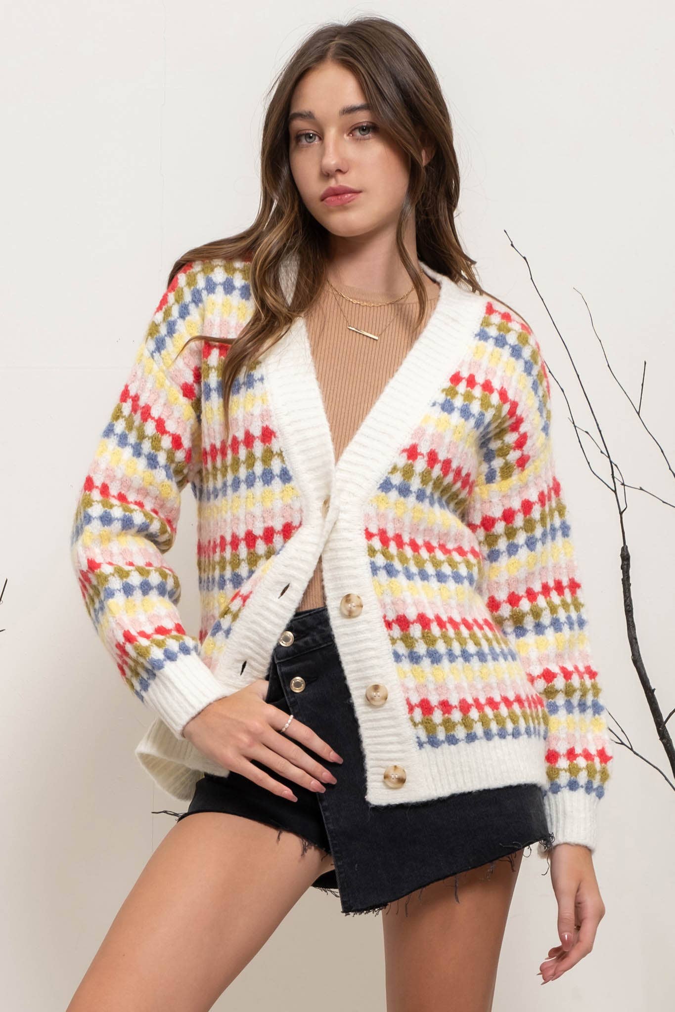 MULTICOLOR BOYFRIEND KNIT CARDIGAN