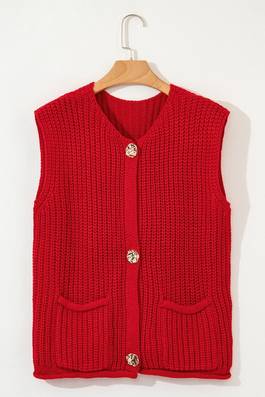SPRING Textured Knit Buttoned Sweater Vest